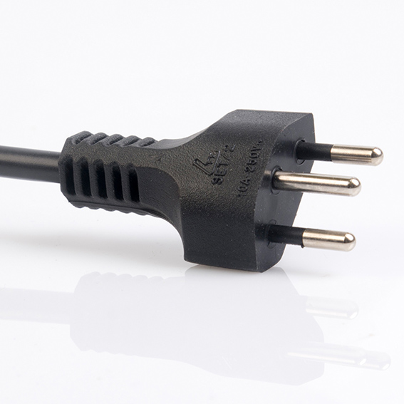 Spina tripolare, collegata al cavo in modo indissolubile.